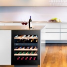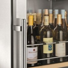 بالنسبة للتصميم ، يمكن تتبع هوية الشركة هنا ، مع اختلاف أن الأبواب مصنوعة من الزجاج. يتيح لك خيار التصميم هذا الإعجاب بالمجموعة ، الموضوعة بشكل جميل على الأرفف الخشبية للخزانة ، بينما تحمي مرشحات الأشعة فوق البنفسجية الموجودة على الزجاج النبيذ من التعرض لأشعة الشمس.