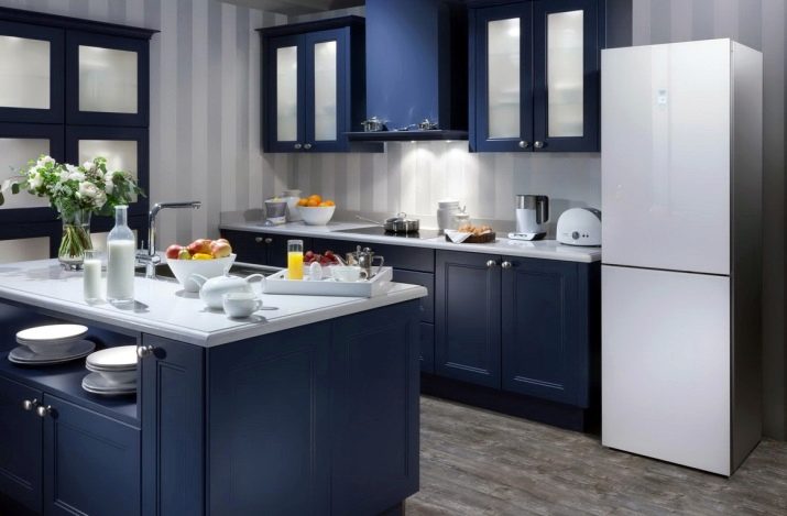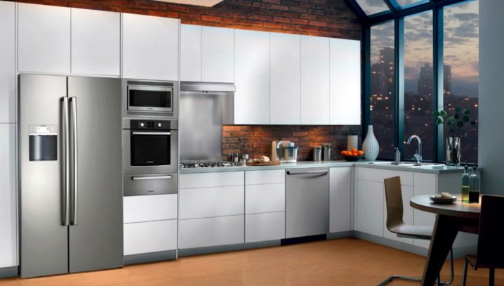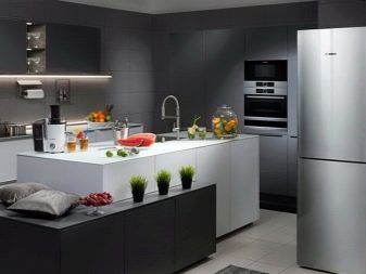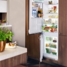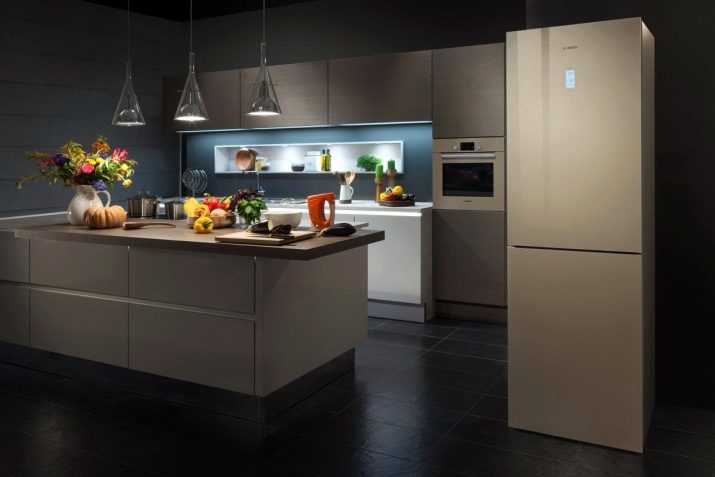 الموضة لوضع أدوات المطبخ خلف واجهات الخزانات لم تترك دون الاهتمام والثلاجات. تحظى الثلاجات المدمجة بشعبية كبيرة لأنها تتيح لك إنشاء التصميم المطلوب..