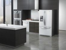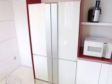 بالنسبة لأولئك الذين يعتبرون الباب الشفاف جريئًا للغاية ، يمكنهم إلقاء نظرة فاحصة على ثلاجة بواجهة زجاجية. تبدو الواجهة الزجاجية البيضاء وكأنها سطح جليدي لامع تم العثور عليه فجأة في المطبخ. تعمل انعكاسية الثلاجة بشكل رائع في مطبخ صغير ، مما يخلق تأثير المساحة الحرة مثل المرايا. بالإضافة إلى ذلك ، يندمج هذا النموذج عمليًا مع التصميم الداخلي العام ، مما يمنح الإضاءة الأخيرة..
