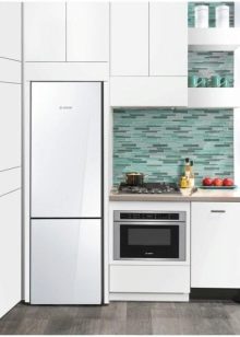 وبالتالي ، يمكن رؤية الأسطح اللامعة في العديد من المطابخ اليوم. هذا هو أحد أسباب شراء ثلاجة زجاجية تتناسب تمامًا مع الداخل ، لتصبح واحدة مع المطبخ. لا يمكن لمعدات التبريد المصنوعة من المعدن ، بكل تنوعها ، أن توفر تأثير الوحدة ، كونها وحيدة في مساحة المطبخ. ميزة أخرى للثلاجة ذات الزجاج الأبيض هي اللون. يتم تضمينها في فئة الكلاسيكيات التي لا يمكن إنكارها وتناسب كل ديكور داخلي تقريبًا ، باستثناء الاتجاهات الحديثة الجديدة..