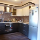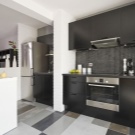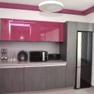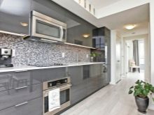 - سيبدو المطبخ الرمادي الداكن بأسلوب عصري أنيقًا بشكل خاص مع الأجهزة المنزلية المصنوعة من الكروم. تتناسب وحدة التبريد المطلية بالكروم أيضًا بشكل جيد مع النمط الكلاسيكي للمطبخ. سيكون حل التصميم المثير للاهتمام هو وضع عناصر الإضاءة على الخزانات. ويمكن تجهيز المطابخ الحديثة بإضاءة LED إضافية ، والتي يمكن استخدامها لتزيين حتى الأجهزة المنزلية الكبيرة..