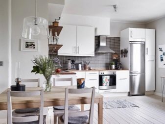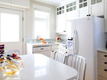 بالطبع ، يمكنك دائمًا بناء الوحدة في داخل المطبخ ، ثم سيتم إخفاؤها عن أعين المتطفلين ولن تبرز في الخلفية العامة. لكن ليس كل المالكين يريدون إخفاء هذا الجهاز المنزلي الكبير. قد تضيف الثلاجة أيضًا لمسة إلى تصميم المطبخ الداخلي ، خاصةً إذا كانت مصنوعة بلون واحد والوحدة في لون آخر. ولكن ليس فقط في هذه الحالة ، يجب أن تتركها على مرأى من الجميع. سيبدو المطبخ الأبيض مع ثلاجة بيضاء أو ملونة بنفس الجودة..