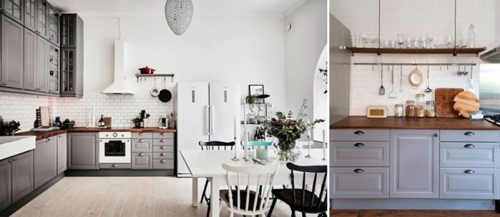 - من الأفضل دمج تصميم الغرفة ذات اللون الرمادي الفاتح مع الظلال البيضاء., خاصة عندما يتعلق الأمر بتصميم المطبخ الكلاسيكي. حل آخر مثير للاهتمام هو الجمع بين الأثاث الرمادي والإكسسوارات والأجهزة الفضية..