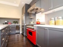 هذا هو الحل الأكثر عملية لداخل المطبخ. يمكن أن يكون تصميم مثل هذا المطبخ من أي ظل رمادي: من الأفتح إلى الأغمق. يمكن أن يكون النمط أيضًا. لتصميم مطبخ رمادي بشكل صحيح ، تحتاج إلى معرفة بعض القواعد ، وإلا فهناك خطر الحصول على تصميم عملي مختلف تمامًا تحلم به. أولاً ، عليك أن تقرر لوحة الألوان ، لأنه يمكن أن يكون هناك مجموعة كبيرة ومتنوعة من الظلال. سيعمل البعض منهم ، والبعض الآخر لن يعمل. ثانيًا ، يجب تحديد السؤال ما إذا كان الجزء الداخلي من المطبخ سيكون رماديًا خالصًا أم مزيجًا من اللون الرمادي مع بعض الألوان الزاهية (أصفر أو أخضر أو أحمر). بعد الإجابة على هذه الأسئلة ، يمكنك البدء في إنشاء مشروع واختيار ظلال من الأجهزة المنزلية.