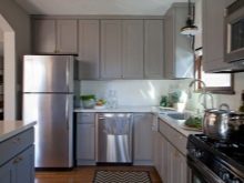 بالنسبة للمطابخ الرمادية ، يمكنك اختيار ثلاجة بيضاء. سوف يتناسب بشكل متناغم مع الداخل ويخفف قليلاً بملاحظة خفيفة. بالإضافة إلى ذلك ، يمكنك التقاط أجهزة منزلية أخرى باللون الأبيض. سيكون الحل الآخر لمثل هذا التصميم الداخلي هو ثلاجة تتناسب مع المطبخ. ومع ذلك ، يجب على المرء أن يأخذ في الاعتبار حقيقة أنه في هذه الحالة هناك خطر جعل مطبخك مملًا إلى حد ما إذا كان مصنوعًا من لون واحد..