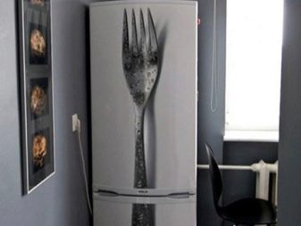 إذا كنت قد اشتريت ثلاجة مسبقًا ، ولا تتناسب تمامًا مع داخل المطبخ ، فإن تزيين الجهاز سيكون أفضل طريقة للخروج من هذا الموقف. على سبيل المثال ، إذا كانت الثلاجة الرمادية لا تتناسب مع المطبخ الأبيض ، فيمكنك طلاءها بأنماط بيضاء. وإذا كنت قد صنعت مطبخًا حديثًا بألوان زاهية وتعتقد أن الجهاز الأبيض لا يتناسب مع الصورة العامة ، فيمكنك تزيينه بأحجار الراين والملصقات الملونة والرسم وطرق الديكور الأخرى المتاحة.