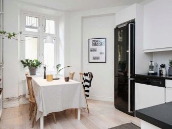 بالطبع ، من أجل شراء مثل هذه الوحدة السوداء لمطبخك ، يجب أن تتحلى بالشجاعة. إنه جهاز أنيق نوعًا ما ، يبدو صارمًا ومتوازنًا للغاية ، وسيبدو مناسبًا فقط إذا كان المطبخ مصنوعًا بأسلوب حديث.. علاوة على ذلك ، في هذه الحالة ، لن يكون لون مجموعة المطبخ وجدران المطبخ مهمًا. على خلفية نمط مختلف ، ستصبح الثلاجة السوداء غير مناسبة وشيء غريب..