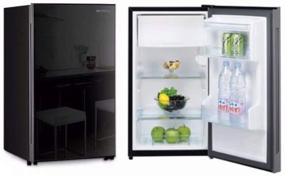 إذا كانت هناك حاجة إلى ثلاجة في المكتب ، فستبدو وحدة سوداء صغيرة مرموقة فيها. سيصبح مثل هذا الجهاز بحجم طاولة السرير لا غنى عنه في غرفة ذات مساحة محدودة وحيث يحتاج الطعام إلى التخزين قليلاً وبشكل غير منتظم..