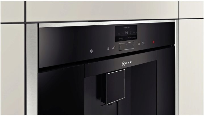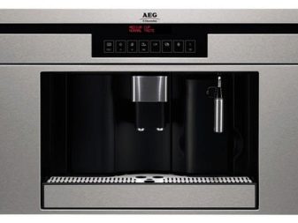 - لا تتطلب آلة القهوة المدمجة مساحة كبيرة (على عكس “إخوانهم” المحمول). هذا الحل هو الأكثر نجاحًا لمطبخ الاستوديو الحديث أو أي منزل صغير..