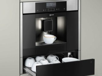 لا يمكنك إبراز الطيف الوظيفي فحسب ، بل يمكنك أيضًا إبراز الأشياء الصغيرة الممتعة الأخرى. العناية بهذه المعدات لا تسبب أي صعوبات. الصواني من حوامل الأكواب قابلة للإزالة ، يمكنك تنظيفها بنفسك بقطعة قماش مبللة (أو حتى وضعها في غسالة الأطباق). تم تجهيز بعض الطرز أيضًا بأرفف قابلة للسحب حيث يمكنك تخزين الخدمة والأكواب وحبوب القهوة والمزيد..