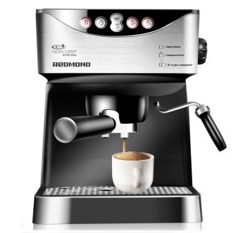 تتميز ماكينات صنع قهوة الإسبريسو بمبدأ تشغيل مختلف تمامًا: بفضل التصميم الخاص للآلة ، لا يختلط الماء الذي يتم تسخينه بواسطة الغلاية مع القهوة المطحونة ، ولكن يتم تمريره من خلاله على شكل بخار تحت ضغط عالٍ. يتكثف بخار الماء هذا في غرفة منفصلة ، وهو مشبع برائحة وطعم الفاصوليا المطحونة حديثًا ، مما يتيح لك الاستمتاع بالمذاق القوي والمكرر للمشروب..
