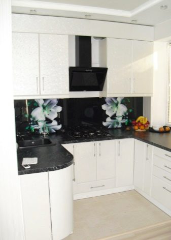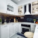 مطبخ صغير. للمساحات الصغيرة ، يوصي المصممون بمآزر ذات ظلال فاتحة. يجب أن تبدو الزخرفة أو الصورة منسجمة مع النغمة العامة لسماعة الرأس. سيضيف هذا الضوء ويزيد حجم الغرفة بصريًا. تتعامل الأسطح اللامعة والشبيهة بالمعدن والتي تشبه المرآة بنجاح مع نفس المهمة.