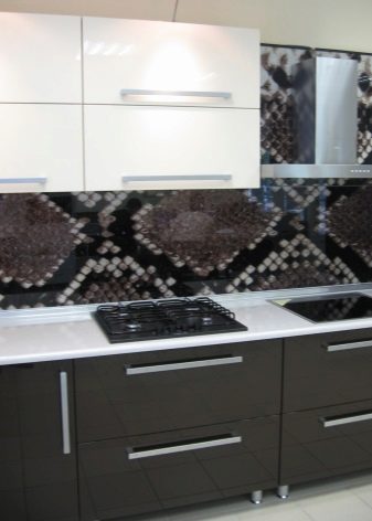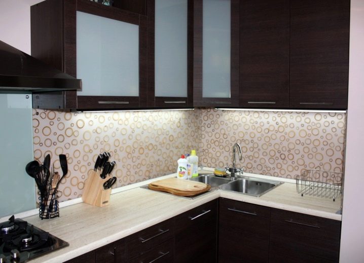 ما لا يقع على حصة المساحة بين كونترتوب وخزائن الحائط: البقع والغبار والسخام ، وتحتاج إلى أن تبدو لا تشوبها شائبة في مطبخ ربة منزل جيدة. المآزر المصنوعة من الألواح البلاستيكية هي الأكثر اتساقًا مع هذه المهمة.