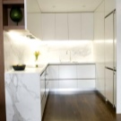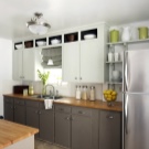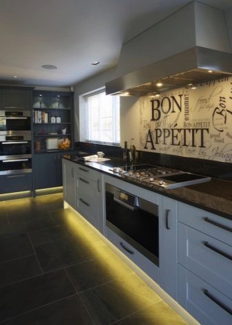 - تحت سطح العمل والأرضيات. يستخدم على نطاق واسع الوقوع في مقياس واحد من هذه العناصر الثلاثة في أسلوب بساطتها. يتطلب دعم عدد صغير من العناصر المشرقة والأنيقة (آلة صنع القهوة ، غلاية كهربائية ، إلخ.)