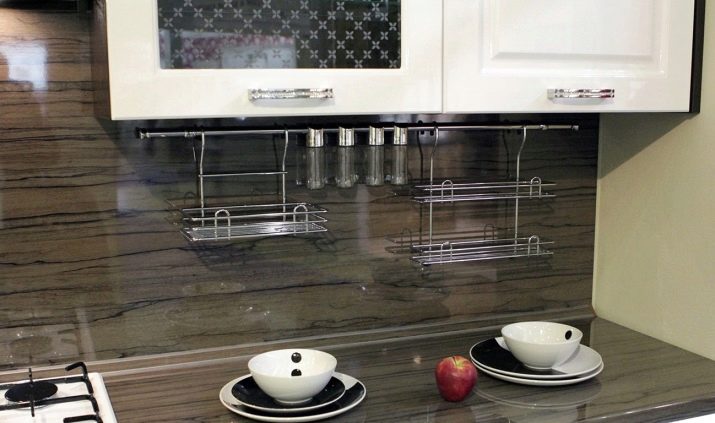 يمكن للبلاستيك تقليد الحجر أو الخشب أو المعدن أو يمكن تطبيق صورة مطبوعة أو ثلاثية الأبعاد على سطحه. من السهل قطع الألواح وحفرها وإنشاء فتحات أنيقة للإضاءة الموضعية والمنافذ الكهربائية. خلف مثل هذا المريلة ، يمكنك إخفاء الاتصالات ، وعلى الجانب الأمامي يمكنك إصلاح الأرفف الخفيفة أو حاويات التوابل..