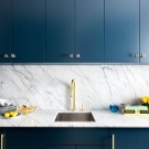 - يتم اختيار المريلة بلون الجدران عندما يتم إنشاء الجزء الداخلي بألوان باستيل دقيقة ، أو مجموعة وجدران بألوان مختلفة.