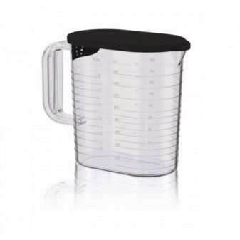- فنجان (يتوافق مع حجم فوهة الغمر ، ويتم خلط وجلد المنتجات في الزجاج دون تناثر).
