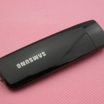 - سامسونج WIS12ABGNX – محول تردد مزدوج لأجهزة التلفاز التي تحمل نفس الاسم. يتم الاتصال باستخدام واجهة USB 2.0. السمات المميزة للنموذج هي أبعاده المدمجة ، وكذلك القدرة على نقل المعلومات بسرعات تصل إلى 300 ميجابت في الثانية..