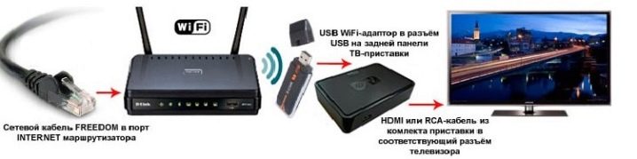 يتم استخدام Wi-Fi لتوصيل التلفزيون بالشبكة العالمية باستخدام التقنيات اللاسلكية. في كثير من الأحيان ، يتم شراء هذه المعدات لجهاز كمبيوتر. من بين المعلمات الرئيسية التي يجب أن يختلف بها هذا الجهاز هي القدرة على إرسال إشارة عبر مسافات طويلة ، وجهاز إرسال قوي ، بالإضافة إلى نظام تشفير موثوق يوفر الحماية من القرصنة..