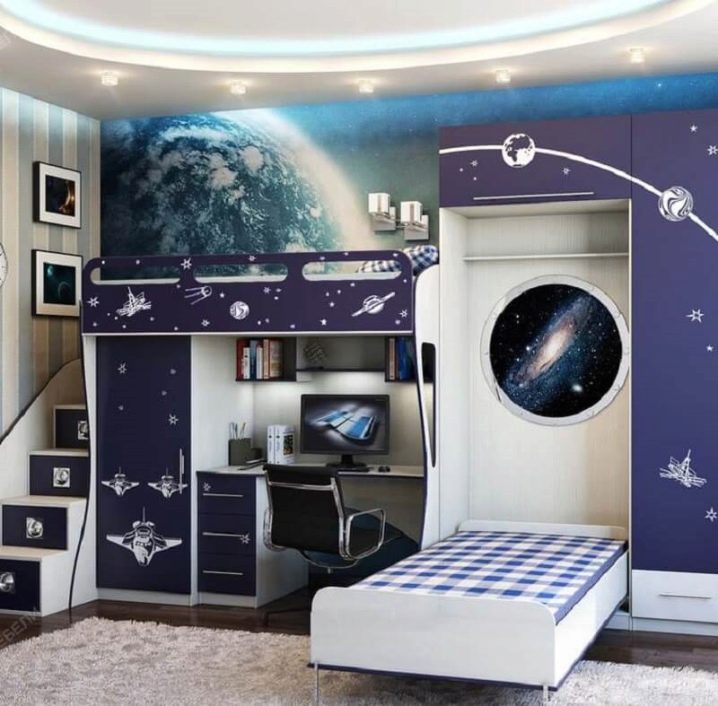 لا تشمل هذه الأسرة سريرًا فحسب ، بل تشمل ، على سبيل المثال ، مكانًا للدراسة أو الاسترخاء. يتم وضع السرير أعلى بكثير من الأسرة العادية. يتم استخدام المساحة الخالية أدناه لتحقيق أقصى فائدة. يمكنك وضع طاولة هناك أو إرفاق شريط حائط.