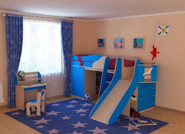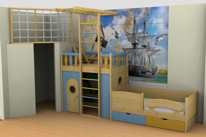يمكن للطفل الوصول إلى السرير باستخدام سلم أو منزلق. غالبًا ما يتم تجهيز معالجات الدرج بأدراج.