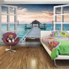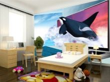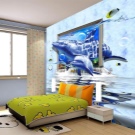 - 3D خلفية بانورامية أو المناظر الطبيعية – تبدو وكأنها لوحة قماش ضخمة. في غرفة للأطفال ، يمكن لصقها على الحائط أو على الحائط ونصف. في أغلب الأحيان ، تصور ورق الحائط البانورامي ثلاثي الأبعاد للأطفال غابة أو مرج به أزهار..