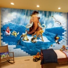 بالنسبة للأطفال الذين تتراوح أعمارهم بين 3 سنوات وما فوق ، يمكنك لصق ورق الحائط ثلاثي الأبعاد مع صورة شخصيات الرسوم المتحركة المفضلة لديك أو القصص الخيالية على الحائط. سوف تلهم Photomurals لصبي مع صورة السيارات أو الأبطال الخارقين الطفل في الألعاب النشطة. بالنسبة للفتيات ، اختر ورق حائط ثلاثي الأبعاد مع الأميرات أو حوريات البحر أو القطط.