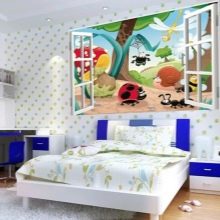 - خلفية الطفل ثلاثية الأبعاد توسع المساحة. نظرًا لعمق الصورة ثلاثية الأبعاد ، فإنها تتيح لك إخفاء عيوب كبيرة في الغرفة. هذا ينطبق بشكل خاص على غرف الأطفال الصغيرة. ستساعد خلفية الأطفال ثلاثية الأبعاد على توسيع غرفة ضيقة بصريًا أو رفع الأسقف.