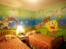 إذا كان كل من صبي وفتاة يعيشان في نفس الغرفة ، فمن الأفضل تقسيم المساحة لهما ، وإنشاء مناطق منفصلة لكل طفل. على سبيل المثال ، بالنسبة للفتيات ، من خلال لصق صورة بها حورية البحر على الحائط ، وورق حائط لصبي بها صورة لسيارات رائجة "عربات اليد".