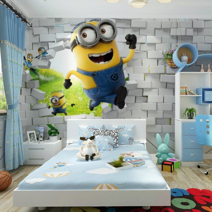 يتم تغطية جميع عيوب ورق الحائط ثلاثي الأبعاد لغرفة الأطفال بالجو الخاص الذي تم إنشاؤه بواسطة الصور المختارة بشكل صحيح. على سبيل المثال ، إذا لم ينام طفلك جيدًا ، يمكنك لصق الصور في منطقة النوم باللونين الأبيض والأسود أو ألوان الباستيل ، مع النظر إلى الطفل الذي سينام بهدوء. إذا كان طفلك شديد النشاط ، فإن خلفيات الأطفال ثلاثية الأبعاد ذات الألوان الهادئة ستساعد على تهدئة مزاجه ، والعكس صحيح ، ستساعد الصور الملونة الزاهية في تحفيز الطفل على اتخاذ الإجراءات..
