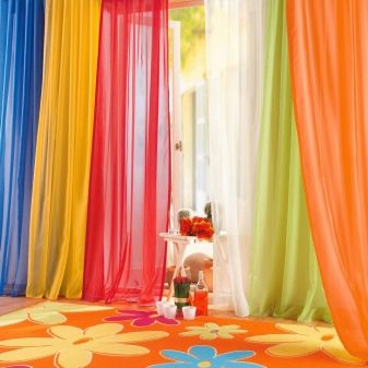 إذا كانت غرفة الأطفال مليئة بالألوان الزاهية ، فيجب اختيار الستائر بألوان صامتة. على سبيل المثال ، أبيض أو بيج.