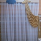 الستارة جاهزة. الآن يبقى تعليق الكورنيش بخطافات وتعليق الستارة الناتجة عليها.