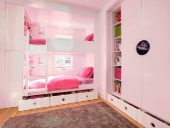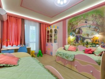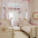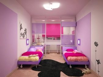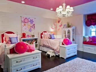 حقيقة أن اللون والتصميم الداخلي لمساحة الغرفة يجب أن يتوافق مع عمر الطفل أمر لا يمكن إنكاره ويتطلب نهجًا معينًا لتنفيذه. يجب على الآباء إجراء مقارنة واضحة بين الاهتمامات العمرية لكل فتاة وأنشطتها والتصميم المناسب للغرفة بأكملها أو المناطق المنفصلة. يمكن تسهيل مهمة التنظيم الداخلي من خلال الحالة عندما يكون لدى الفتيات فرق صغير في السن..