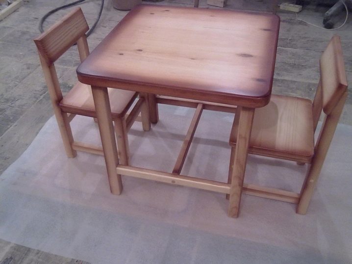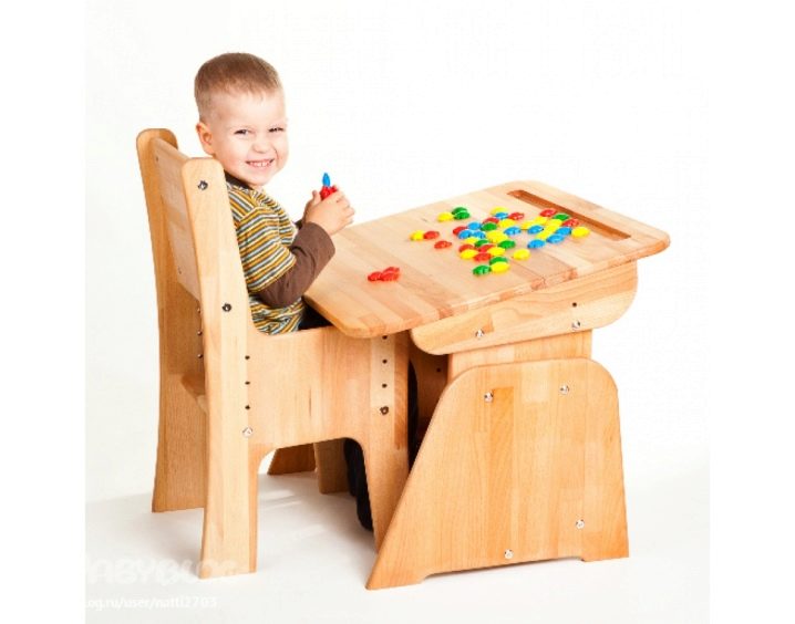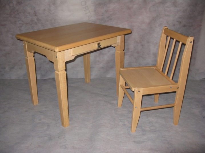 من الأفضل صنع الطاولة والكرسي من خشب الزان. إنه سهل المعالجة ولا يفرز العلكة. ولكن كخيار للميزانية ، فإن خشب الصنوبر أو البتولا مناسب تمامًا ، فقط يحتاجان إلى إزالة الصمغ منه ، لأن الراتنج غير آمن للطفل ، ويمكن أن تتلف الملابس.
