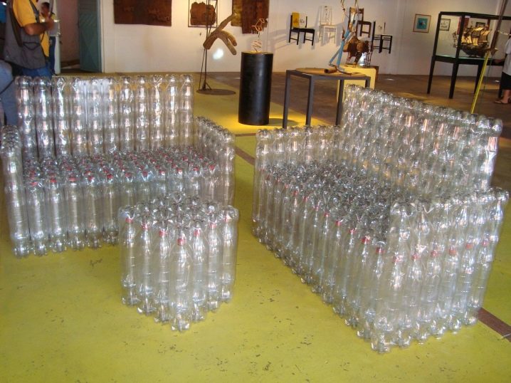 بدلاً من ذلك ، يمكنك بناء طاولة وكرسي مصنوع من الزجاجات البلاستيكية في داشا في منطقة الملعب. في الوقت نفسه ، ليست هناك حاجة عمليًا لاستثمار الأموال ، وتحت تأثير الظروف الجوية ، لن يكون لهذه المجموعة أي شيء..