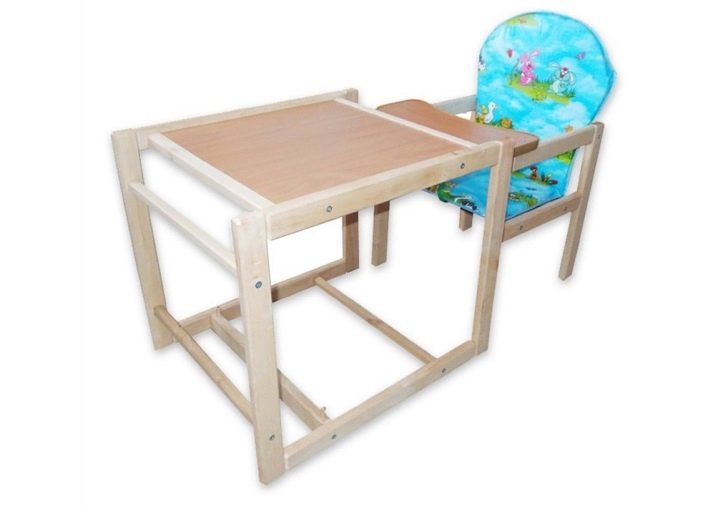 الخشب الرقائقي ، باعتباره أرخص مادة ، مقبول أيضًا في صناعة المقعد المرتفع. يمكن أن تحمل بسهولة وزن الطفل وخفيفة الوزن وسهلة المعالجة.