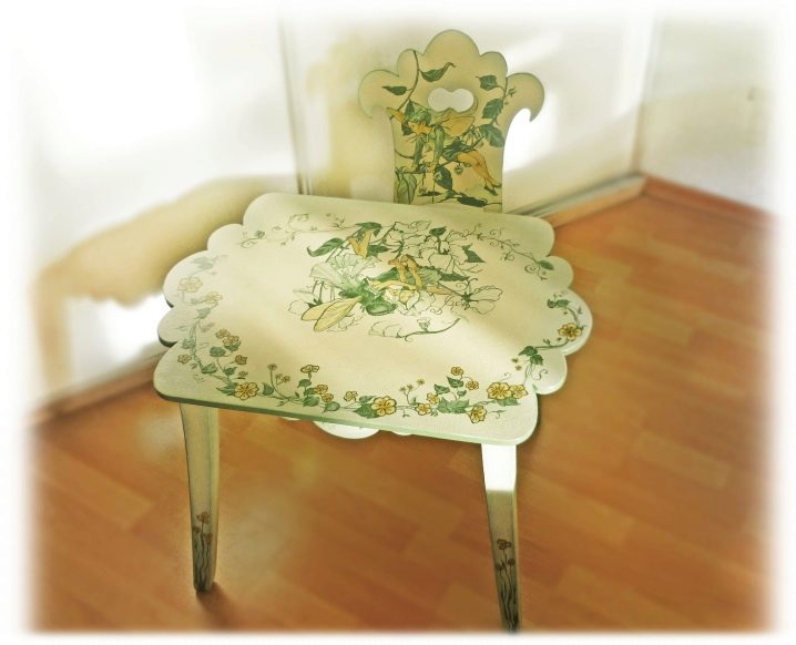 طريقة أخرى لتزيين الكرسي هي الملصقات. يمكن شراؤها جاهزة أو صنعها بنفسك من فيلم لاصق ذاتيًا باستخدام الاستنسل.