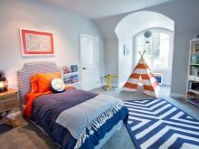 بالنسبة لغرفة الصبي ، من المهم أيضًا مدى بساطة المواد التي تُصنع منها السجادة. يعد ذلك ضروريًا حتى يسهل تنظيفه من الأوساخ والغبار. لذلك ، فإن كومة طويلة لغرفة نوم الأطفال أمر غير مرغوب فيه..