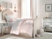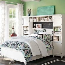 تأكد من الانتباه إلى السرير – هذا هو أحد العناصر الرئيسية لغرفة النوم. يجب أن تكون مستقرة ومن المستحسن أن يكون لديك مرتبة لتقويم العظام. يجب أن يكون هناك أيضًا طاولة فسيحة في الغرفة ، حيث ستؤدي الطالبة واجباتها المدرسية. يجب أن يتطابق كل شيء في الأسلوب..