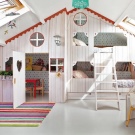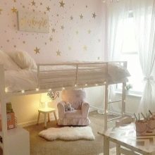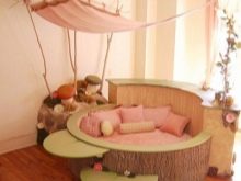 يمكنك أيضًا إنشاء قصة خيالية لأميراتك – اختر سريرًا على شكل عربة أو خيمة. في هذه الحالة ، يمكن أيضًا لصق ورق الحائط بأسلوب حكاية خرافية. لذلك ستشعر أميرتك بالراحة في غرفتها..
