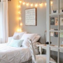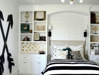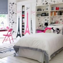 هذا الخيار قريب من الخيار السابق. الشيء الرئيسي الذي يجب مراعاته عند تنظيم غرفة نوم الفتاة هو رأيها. خلال هذه الفترة ، بدأت تلميذات المدارس في الرد بحدة على النقد والمحظورات. لا ينبغي أن تفعل ذلك. من الأفضل تطوير نسخة مشتركة واختيار تصميم لطالبة في المدرسة معًا.