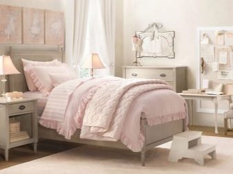 تأكد من الانتباه إلى السرير – هذا هو أحد العناصر الرئيسية لغرفة النوم. يجب أن تكون مستقرة ومن المستحسن أن يكون لديك مرتبة لتقويم العظام. يجب أن يكون هناك أيضًا طاولة فسيحة في الغرفة ، حيث ستؤدي الطالبة واجباتها المدرسية. يجب أن يتطابق كل شيء في الأسلوب..