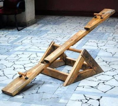 - من السهل أيضًا عمل ثنائيات متأرجحة.. للقيام بذلك ، تحتاج إلى قطع إطار بسيط إلى جزأين. تم وضعه على الأرض. تحتاج إلى وضع لوحة جيدة التشطيب عليها. عندما يجلس الأطفال على حواف مثل هذا التأرجح المرتجل ، سيكون من الممكن التأرجح عليه بهدوء بنفس الطريقة التي يتأرجح بها عنصر جذب تم شراؤه.