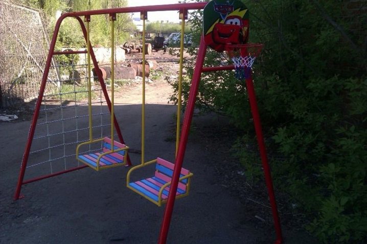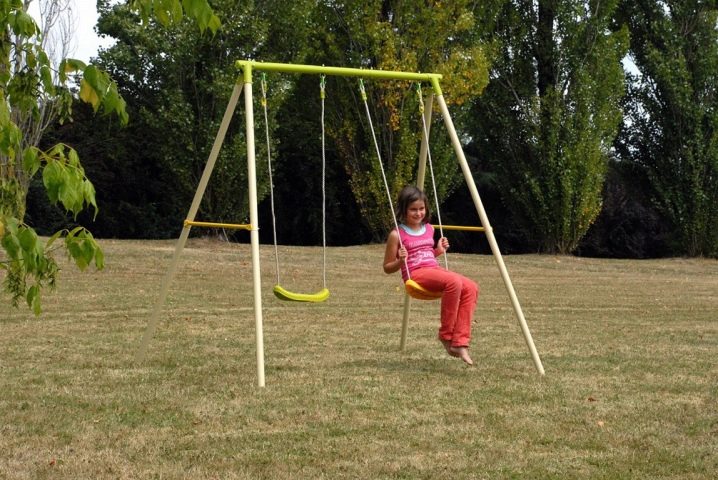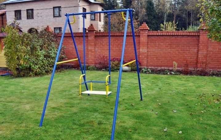 إذا اشتريت أرجوحة ، فمن الأفضل أن تختار بنية معدنية صلبة.. في هذه الحالة ، يتكون الإطار من أنابيب فولاذية. إنها جيدة لأنها تتحمل الأحمال الثقيلة ، لذلك إذا تأرجح عليها العديد من الأطفال في وقت واحد ، فلن تنكسر الأعمدة على أي حال.