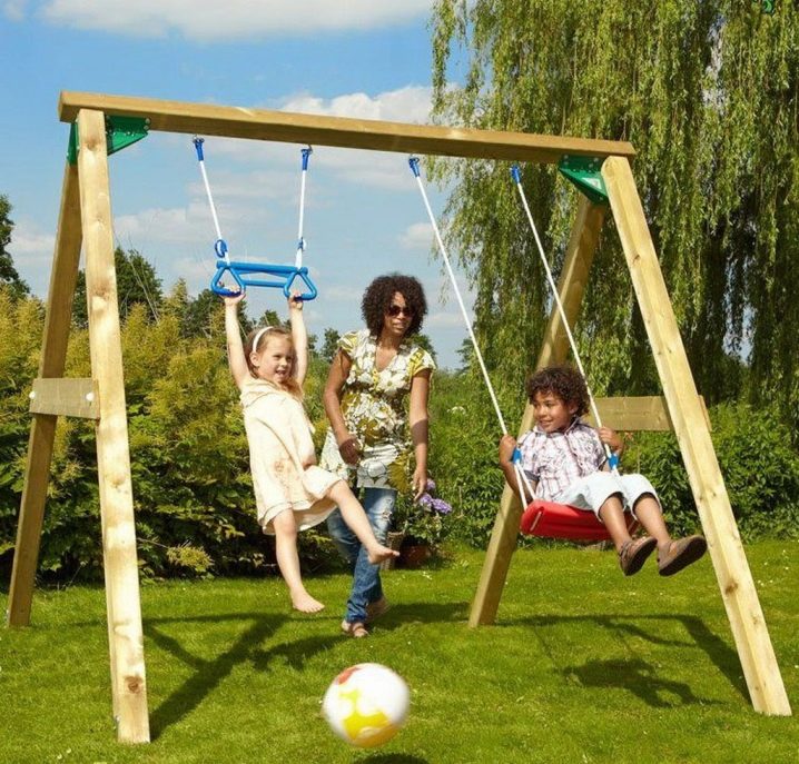 التأرجح المزدوج أمر لا بد منه لأولئك الذين يحبون الاسترخاء بصحبة الأطفال. اختر هياكل متينة ، وقم بتثبيتها على موقعك ، وسوف يستمتع أطفالك بعطلتهم ولن يشتت انتباهك عن شؤون الكوخ الصيفي..
