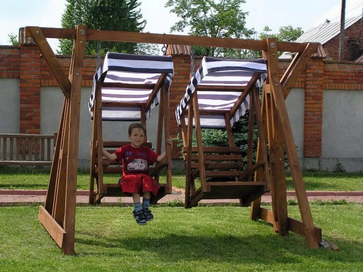 التأرجح المزدوج أمر لا بد منه لأولئك الذين يحبون الاسترخاء بصحبة الأطفال. اختر هياكل متينة ، وقم بتثبيتها على موقعك ، وسوف يستمتع أطفالك بعطلتهم ولن يشتت انتباهك عن شؤون الكوخ الصيفي..