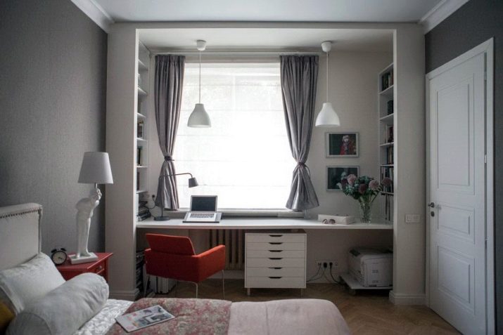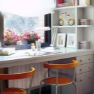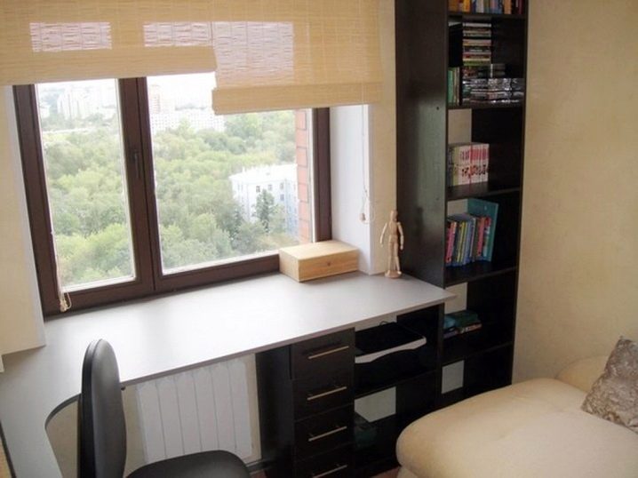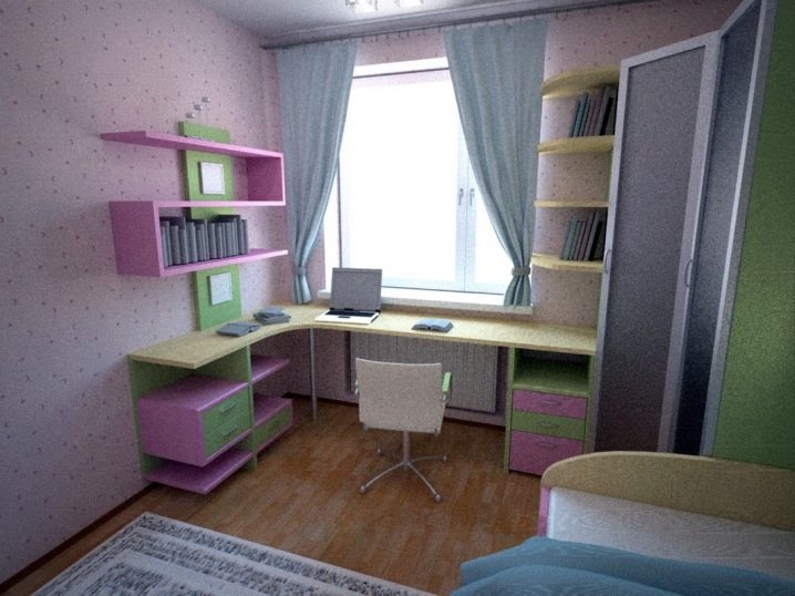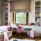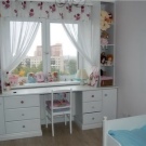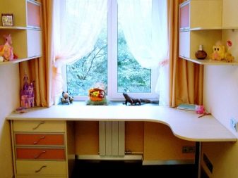 بالنسبة لغرفة النوم الصغيرة ، سيكون الحل الأكثر نجاحًا هو الموقع بالقرب من النافذة.. باستخدام مثل هذا الجدول ، يمكنك استبدال عتبة النافذة وزيادة المساحة القابلة للاستخدام بشكل كبير. ستحتوي غرفة الأطفال على مساحة أكبر للألعاب والاسترخاء..
