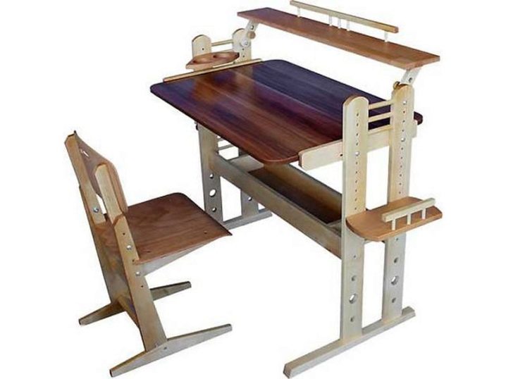 تعتبر الكراسي الخشبية أكثر ملاءمة للبيئة لأثاث الأطفال ، فهي أكثر دفئًا وأخف وزنًا ويمكن أن تكون مع منطقة دعم كبيرة. تعديل الارتفاع متدرج ، تم دمج ميل مسند الظهر في التصميم.