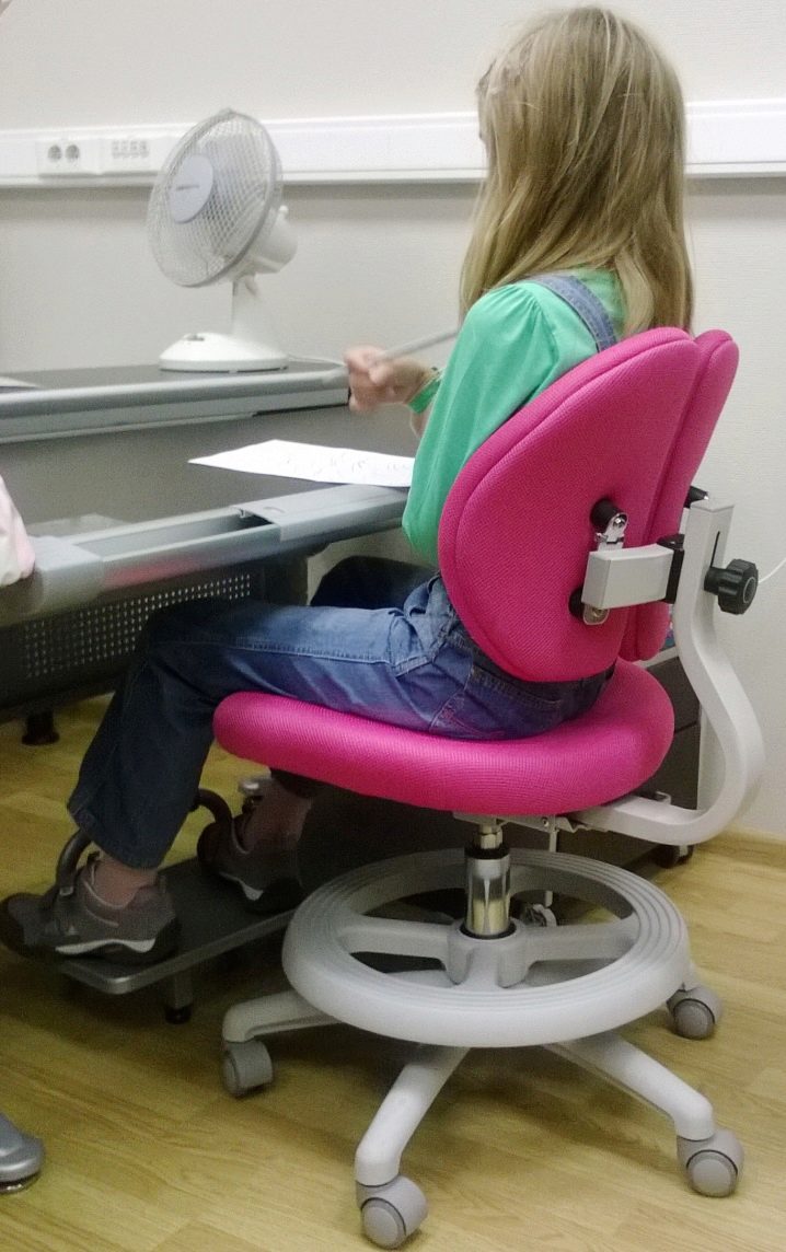 في حالة عدم وصول قدم الطالب إلى الأرض ، من الضروري استخدام حامل أو شراء كرسي مع حامل قابل للإزالة ، والذي يمكن بعد ذلك إزالته عندما يتغير ارتفاع الطالب.