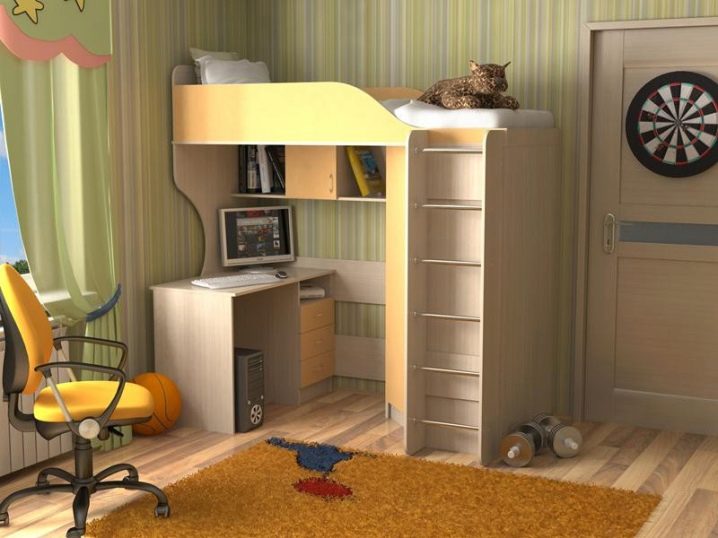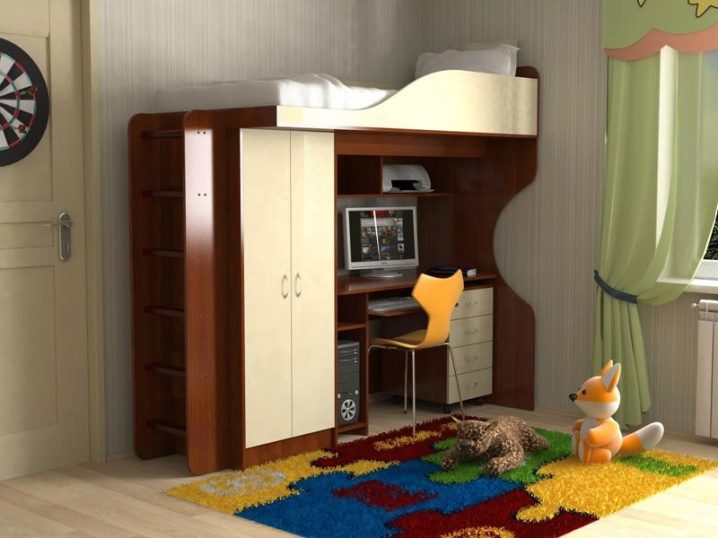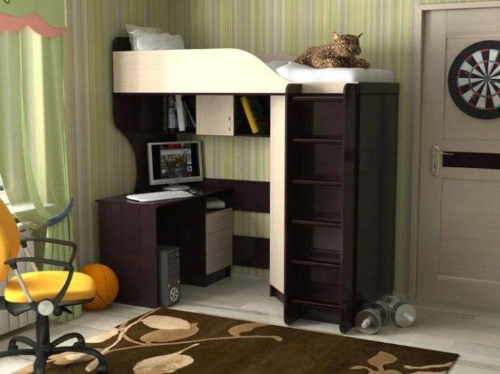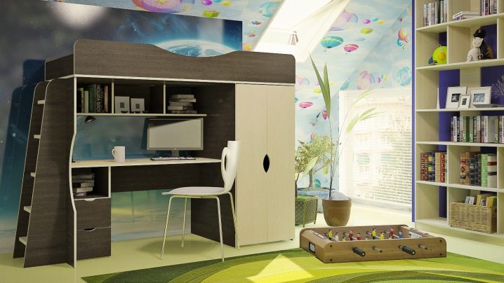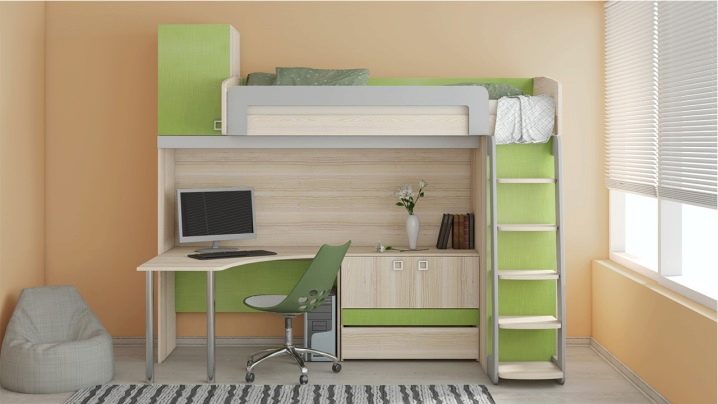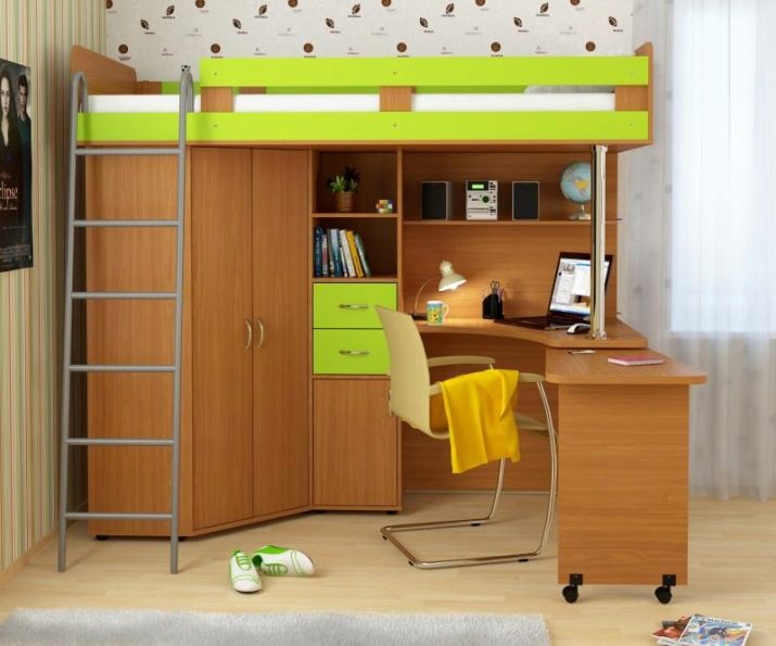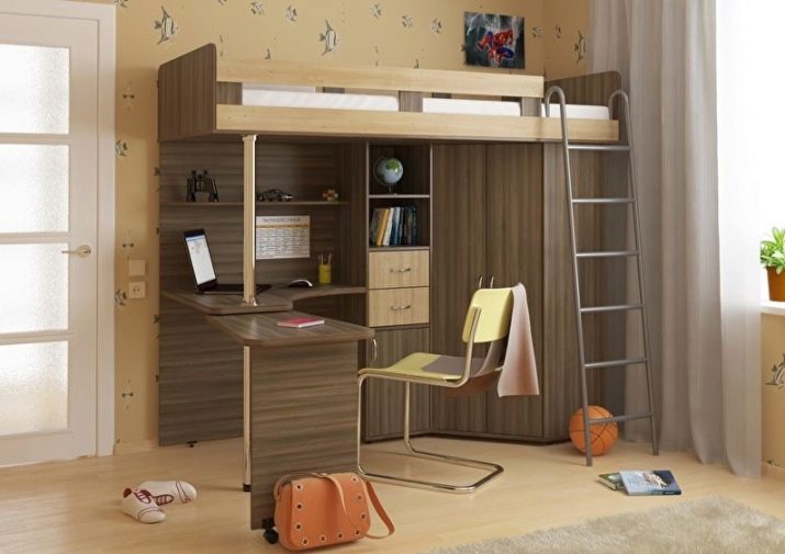 يتناسب السرير العلوي المريح والعملي بشكل جيد مع غرفة النوم من أي حجم تقريبًا. إنه يوفر المساحة بشكل كبير ، لأنه وحده يجمع بين منطقة النوم ومنطقة العمل. يسهل التعرف على هذا النوع من الأسرة من خلال حقيقة أن سرير الأطفال معلق فوق منطقة العمل مع طاولة بجانب السرير وطاولة..